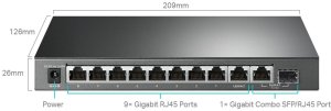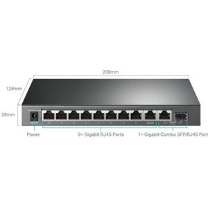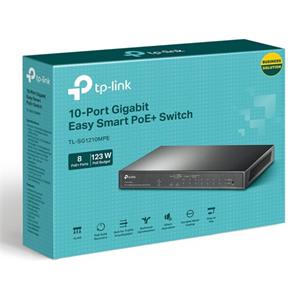 TP-Link TL-SG1210MPE je Gigabitový desktopový managovatelný switch v odolném kovovém šasi s 10× Gigabit LAN a jedním combo SFP, z čehož 8 ethernetových portů podporuje i PoE out 802.3af/at pro napájení kamer, access pointů a podobných zařízení s podporou aktivního PoE. Celkový PoE budget na portech 1 až 8 je celkem 123 W s omezením 30 W/port. Switch lze spravovat jak webové rozhraní tak i přes dedikovanou utilitu.