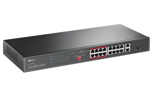 TL-SL1218P je nemanagovatelný rackmount PoE switch s 18ti porty a jedním combo SFP. Prvních 16 portů mají rychlost 10/100Mbps a podporují 802.3af/at PoE s maximální spotřebou 30W/port a celkovým PoE budgetem 150W. Další 2 porty jsou gigabitové, sloužící jako uplink do sítě z čehož poslední port je jako combo port s gigabitovým SFP portem. Switch má na portech 1-16 možnost přepnutí na Extended Mode, což pomůže například při instalaci kamer, kdy dosah ze 100m je rozšířen až na 250m. Při této funkci je link ponížen na 10Mbps.
