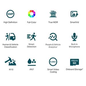 VIGI IP kamera C250(4mm) v provedení dome, disponuje rozlišením 5 MP (2880 X 1620) s fixním objektivem s ohniskovou vzdáleností 4 mm se snímačem 1/2.7'' s citlivostí 0,005 Lux. Kamera díky IR i bílému přísvitu na 30m nahrává barevný (Full-Color) obraz i během noci. Kamera VIGI je vybavena vestavěným mikrofonem, který zaznamenává vše, co se děje v okruhu 5 metrů od kamery. Nechybí slot na microSD karty ani krytí IP67.