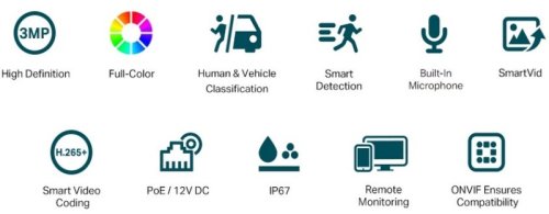VIGI C330(2.8mm) je 3 megapixelová venkovní bullet kamera značky TP-Link s fixním objektivem 2.8mm, bílým světlem a IR přísvitem do vzdálenosti 30m a ethernetovým portem s podporou PoE. Kamera má max. rozlišení 2304 × 1296 px (při 30 fps), pozorovací úhel 108°, 2 nezávislé streamy, krytí IP67, digitální WDR snímač, zabudovaný audio mikrofon, podporu ONVIF, kodeku H.264(+) a H.265(+). Kamera díky větší citlivosti 0,005 Luxu podporuje tzv. Full-Color barevný obraz během celé noci.