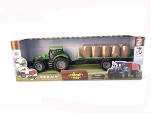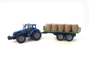 Tento skvělý traktor s přívěsem plným sena je ideální hračkou pro malé farmáře! Traktor o velikosti 45×9×7,5 cm je vybaven pohonem na setrvačník, což znamená, že stačí traktor zatlačit, a ten se sám rozjede.