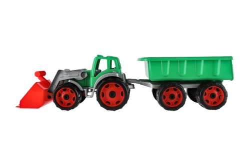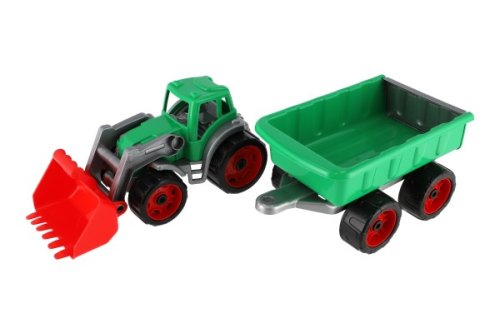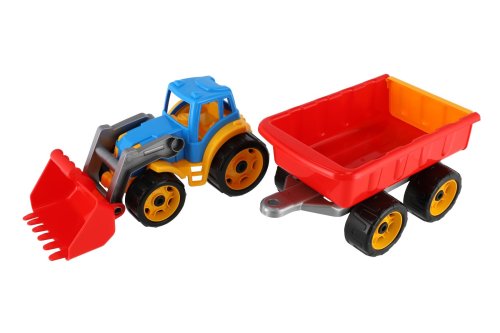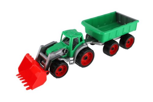 Barevný traktor s vlekem a lžící je vhodný pro každého malého zemědělce a je vyroben z kvalitního a odolného plastu. Užijte si spoustu zábavy s tímto traktorem také na pískovišti, který děti zabaví na dlouhé hodiny. Můžete převážet náklad z jedné strany pískoviště na druhou. Rozměry výrobku 61 x 16 x 16 cm. Vhodné pro děti od 3 let.