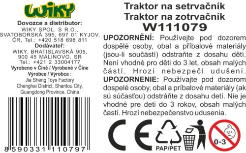 Traktor. Velikost 28 cm. Na setrvačník. 2 varianty - červený, zelený.