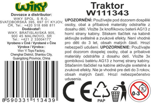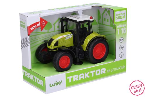Traktor na setrvačník. Vydává světelné a zvukové efekty. Velikost 18 cm.