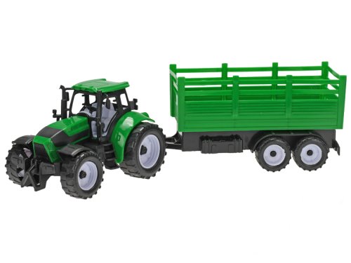 Traktor s vlečkou 38 cm na setrvačník - mix barev (zelená, červená)