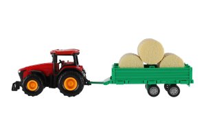 Pro každého malého zemědělce je nepostradatelným, všestranným pomocníkem traktor s přívěsem. Traktor je na setrvačník a je velikosti 30 cm. Nekonečná práce na farmě může začít. Vlek s balíkama je možné odpojit. Rozměry balení 33 x 12 x 9 cm. Vhodné pro děti od 3 let.