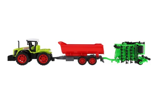 Pro každého malého zemědělce je nepostradatelným, všestranným pomocníkem traktor s vlekem a s bránami. Traktor je na setrvačník. Rozměry balení 10 x 12 x 59 cm. Vhodné pro děti od 3 let.