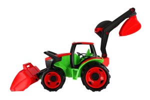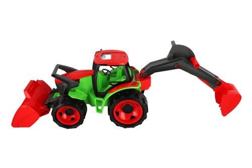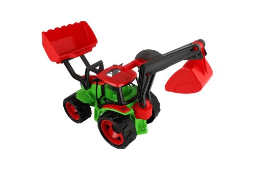 Kvalitně zpracovaný traktor s moderním designem. Byl navrhnut a vyroben tak, aby odpovídal požadovanému modernímu vzhledu, funkčnosti, odolnosti, kvalitnímu zpracování, maximální hrací hodnotě. Velikost 63x42x28 cm. Vyrobeno v ČR.