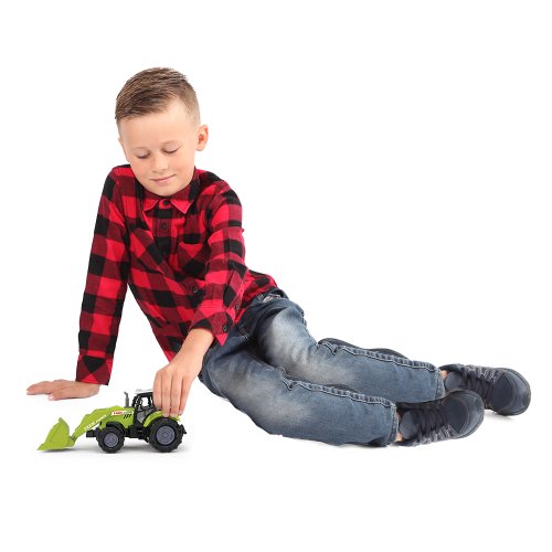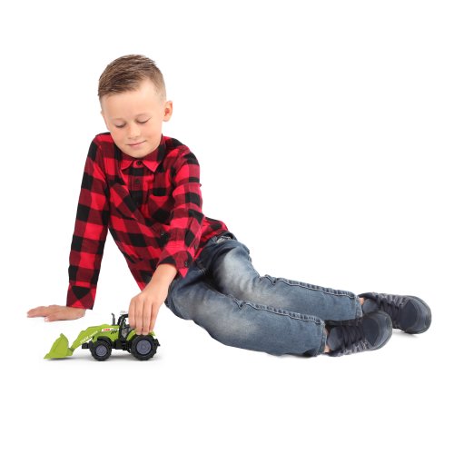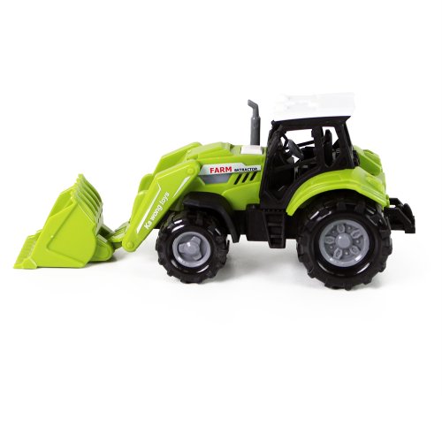 Moderní plastový farmářský traktor se lžící, hračka z kolekce Moje malá farma. Traktor jezdí na volný chod a jeho délka je 15 cm. Zmáčknutím tlačítka na traktoru vydává reálné zvuky spolu se světelným efektem. Traktor vyžaduje 3 ks baterií typu AG13/LR44, které jsou součástí balení.