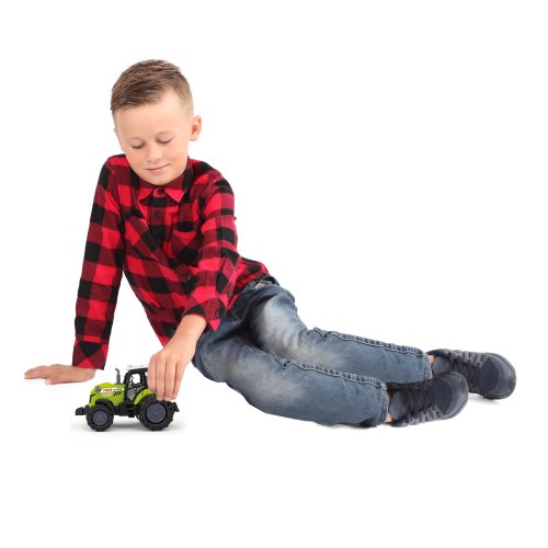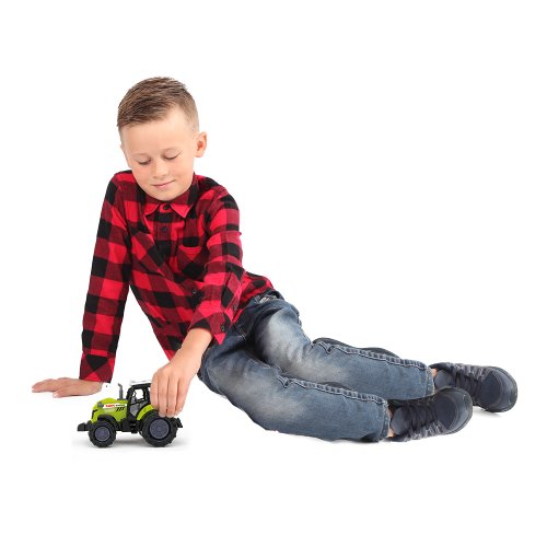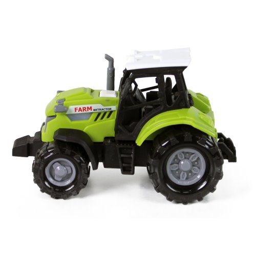 Moderní plastový farmářský traktor, hračka z kolekce Moje malá farma. Traktor jezdí na volný chod a jeho délka je 10 cm. Zmáčknutím tlačítka na traktoru vydává reálné zvuky spolu se světelným efektem. Traktor vyžaduje 3 ks baterií typu AG13/LR44, které jsou součástí balení.