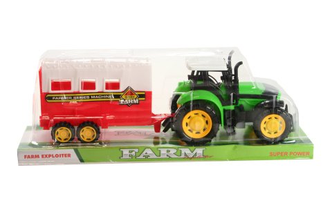 Traktor s farmářským přívěsem o délce cca 32cm, výška traktoru cca 10,5 cm. Věk 3+