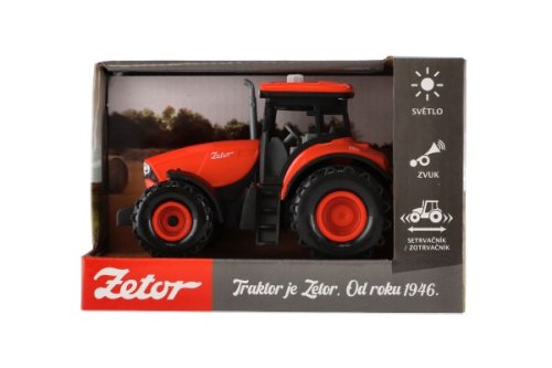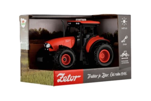 Krásný model zemědělského traktoru Zetor s dlouholetou tradicí, kterou musí milovat snad každý. Vyrazte na pole, jako správný farmář s pořádným traktorem se světlem a zvukem! Zmáčkněte tlačítko a uslyšíte zvuk couvání, druhé tlačítko zatroubí a třetí startuje motor. Traktor je na setrvačník. Traktor zajisté okouzlí každého milovníka traktorů. Hračka je na baterie 3x AG13, které jsou součástí balení. Velkost traktoru: 9 x 14 cm Vhodné pro děti od 3 let