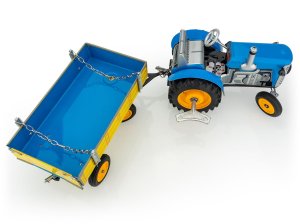 Kovový traktor ZETOR s valníkem na klíček s opravdovou funkční převodovkou se 3 rychlostmi dopředu, zpátečkou a neutrálem. Traktor je vybaven i funkční ruční brzdou. Velikost 28 cm. Měřítko 1:25. Rozměry balení 30 x 9 x 9 cm. Vhodné pro děti od 3 let.