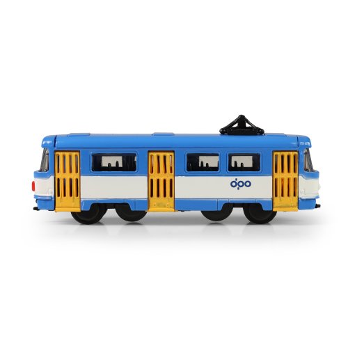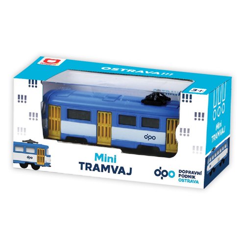 Mini kovová tramvaj T3 v měřítku 1:162 jezdí na volný chod a její délka je 8,5 cm. Podobná tramvaj jezdí ulicemi v Ostravě. Tato hračka byla vyrobena ve spolupráci s Dopravním podnikem města Ostravy a městem OSTRAVA!!!