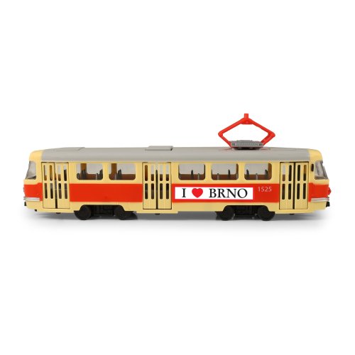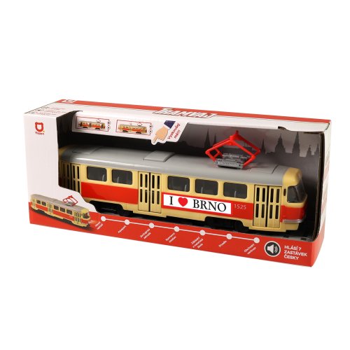 Senzační tramvaj T3 s motivem BRNA, která oznamuje stanice v českém jazyce, je určitě ten pravý dárek pro vaše děti! Tramvaj jezdí na volný chod. Dveře lze manuálně otevřít a zavírají se pomocí tlačítka umístěného na střeše vozu. Při každém otevření se ozve hlášení, při zavření hlásí další zastávku. Otevřením předních dveří se v tramvaji rozsvítí modré světlo. Tramvaj je v délce 28 cm, je vyrobená z plastu a vyžaduje použití 3 ks baterií LR44/AG13, které jsou její součástí. Tahle unikátní hračka nesmí ve vaší sbírce rozhodně chybět!