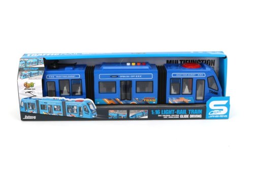 Tato tramvaj v měřítku 1:16 v modré barvě je skvělá pro malé fanoušky městské dopravy! Díky svým rozměrům je ideální pro zábavu v interiéru, ať už na podlaze, stole nebo v dětské herní zóně.