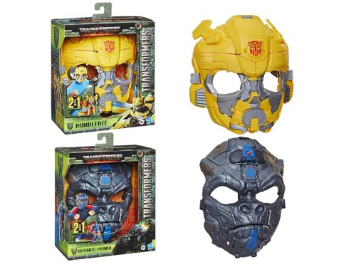 Masky Transformers 2 v 1 mají 25 cm a jsou určeny pro děti od 6 let. Tyto masky pro proměnu ve vaši oblíbenou postavu jsou inspirovány nejnovějším filmem ze světa Transformers! Každá představuje hlavní postavu z filmu. Masku lze nosit a přestavět na figurku