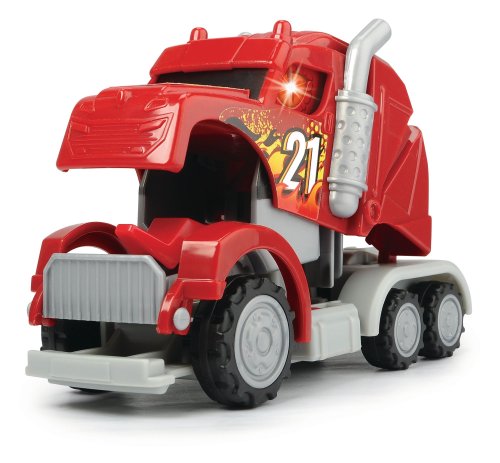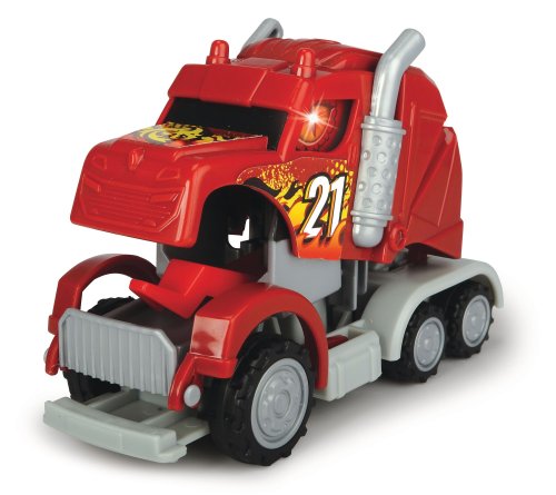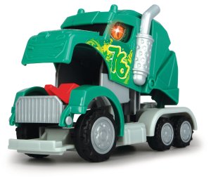 Kabina tahače se ve chvilce promění v draka, tahač na zpětný chod, se zvukovým efektem, s blikajícím světlem. 3 druhy - červený, modrý nebo zelený. Velikost 12,5 cm.