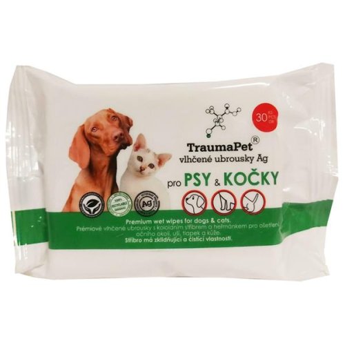 Prémiové vlhčené ubrousky s koloidním stříbrem a heřmánkem pro ošetření očního okolí, uší, tlapek a kůže. Stříbro má zklidňující a čistící vlastnosti. Pro bezpečné, jemné a účinné každodenní použití k odstranění mazu v uších, nečistot v očním okolí, na tlapkách a kůži. Při pravidelném používání ubrousek přispívá ke snížení rizika růstu škodlivých bakterií, které se hromadí v slzných kanálcích a v uších. Složení: Aqua, Colloidal Silver, Coco-Glucoside, Sodium Benzoate, Potassium Sorbate, Citric Acid, Propylene Glycol, Chamomilla Recutita Flower Extract, Lactic Acid, Parfum (White Tea)