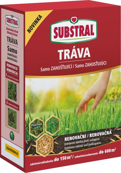 Renovační travní směs obsahuje nově vyšlechtěný druh jílku vytrvalého (Lolium Perenne RPR), který má vysokou schopnost regenerace. Díky této vlastnosti získáte odolný a hustý trávník, který při správné péči (hnojení, provzdušňování, zavlažování apod.) bude velmi pěkný po mnoho let.