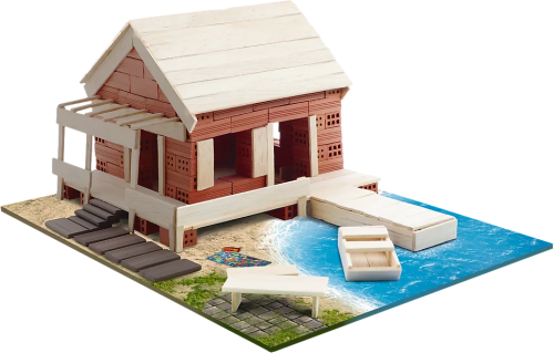 Skládejte cihlu za cihlou, řežte a lepte prkénka, postupujte od základů až po dokončenou budovu a nakonec svůj výtvor ozdobte přiloženými dekoracemi. Stavte krok za krokem podle návodu nebo najděte a zrealizujte své vlastní řešení. Oživte svou dokončenou stavbu papírovými figurkami.