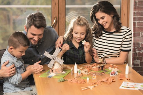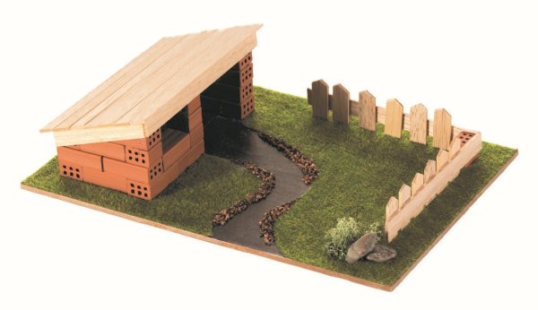 Budujte stavby ze skutečných hliněných cihle a dřeva. Skládejte cihly, řezejte, lepte materiály a svůj skvělý výtvor is poté ozdobte, v krabici. Vhodné od 6 let.