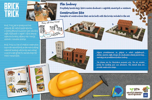 Stavebnici lze používat opakovaně (lepidlo je rozpustitelné vodou). Stavebnice Brick Trick od výrobce TREFL zlepšují manuální dovednosti, rozvíjí představivost a podporují soustředění.