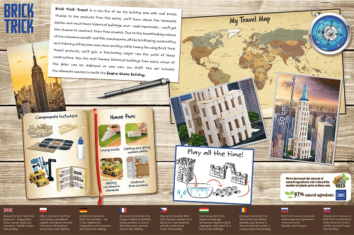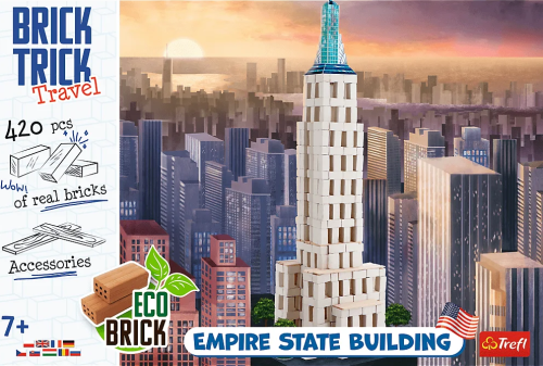 Empire State Building je newyorský mrakodrap, jeden z nejvýznamnějších symbolů tohoto města a dokonce i celé země, Spojených států Amerických. S produkty z řady Brick Trick Travel se seznámíte s některými populárními a oblíbenými památkami a hlavně si je můžete sami postavit od základů. Skládejte cihlu za cihlou, řežte a lepte prkénka, postupujte od základů až po dokončenou budovu a nakonec svůj výtvor ozdobte přiloženými dekoracemi. Stavějte krok za krokem podle návodu nebo najděte a zrealizujte své vlastní řešení. Pokud spojíte několik sad TREFL Brick Trick, můžete vytvořit malebnou vesničku, moderní město nebo středověkou osadu. Stavebnici lze používat opakovaně (lepidlo je rozpustitelné vodou). Balení obsahuje: - více než 420 přírodních hliněných cihliček - dřevěné desky - základovou desku - ozdobné prvky - samolepku - lepidlo - obrázkový návod Stavebnice Brick Trick od výrobce TREFL zlepšují zručnost, rozvíjí představivost a podporují soustředění.
