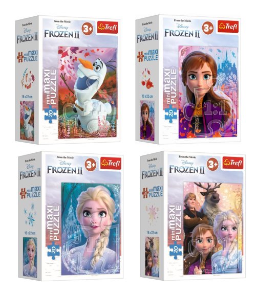 Poskládajte si puzzle s motivem oblíbené pohádky Ledové Království II. Můžete si vybrat ze čtyř druhů motivu. Puzzle obsahuje 20 Maxi dílků. Puzzle rozvíjí dětské schopnosti a cvičí šikovnost. Velikost složeného obrázku je 16 x 22cm. Rozměry výrobku 11 x 8cm. Vhodné pro děti od 3 let.