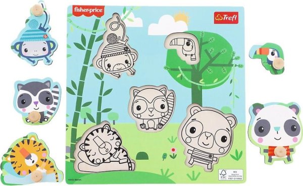 Vkládačka pro nejmenší s obrázky rozpustilých zvířátek z džungle. Dítě se podle obrysů a tvaru snaží najít správný obrázek (rozvoj představivosti a logického myšlení), a umístit jej do správného otvoru (rozvoj jemné motoriky). Vkládačka obsahuje pět dílků s úchytkami a podkladové obrázky.