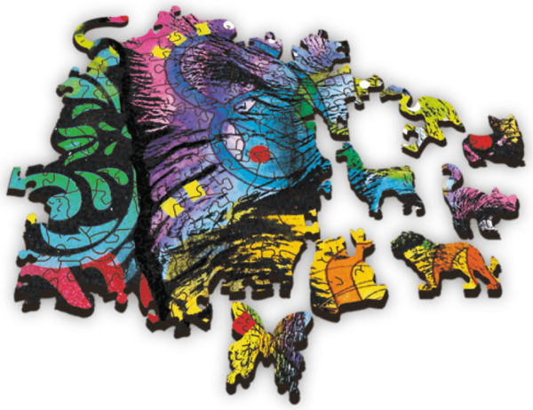 vysoká kvalita a precizní zpracování laserem, část dílků je v klasickém puzzle tvaru, část je tvarovaná nepravidelně, 5 dílků má speciální tvary související s obrazem, puzzle je oboustranné - z jedné strany obrázek, z druhé strany vzor, zadní stranu puzzle se vzorem můžete libovolně nabarvit a vytvořit tak vlastní umělecké dílo, ekologické balení - zcela bez plastových obalů, dílky jsou baleny v papírovém sáčku.