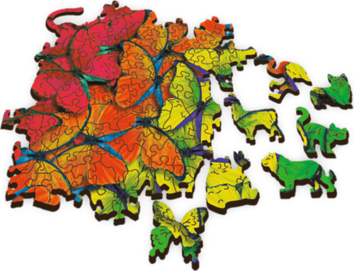 vysoká kvalita a precizní zpracování laserem, část dílků je v klasickém puzzle tvaru, část je tvarovaná nepravidelně, 5 dílků má speciální tvary související s obrazem, puzzle je oboustranné - z jedné strany obrázek, z druhé strany vzor, zadní stranu puzzle se vzorem můžete libovolně nabarvit a vytvořit tak vlastní umělecké dílo, ekologické balení - zcela bez plastových obalů, dílky jsou baleny v papírovém sáčku.