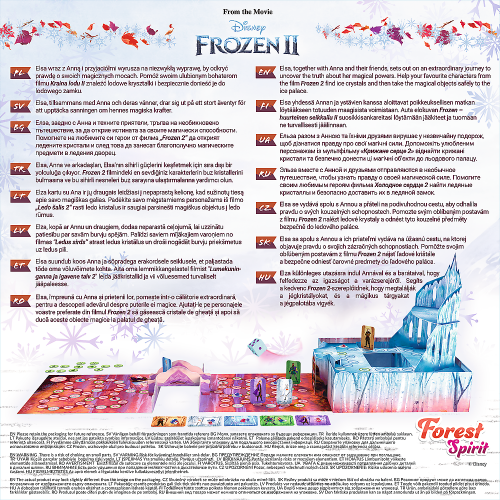 Společenská hra Forest Spirit 3D Ledové království II. Elsa se vydává spolu s Annou a přáteli na podivuhodnou cestu, aby odhalila pravdu o svých kouzelných schopnostech. Pomozte svým oblíbeným postavám z filmu Frozen 2 nalézt ledové krystaly a odnést tyto kouzelné předměty bezpečně do ledového paláce. Vhodné od 5 let.