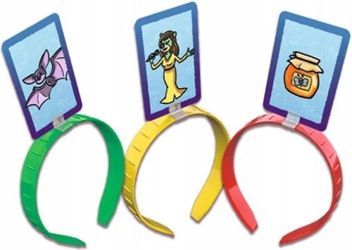 Nasaďte si čelenky. Každý hráč zasune do čelenky jednu kartu tak, aby ji ostatní viděli. On sám se na ní ale podívat nesmí. První hráč se zeptá na nejvýše 3 otázky o své kartě. Ostatní na ně smí odpověedět pouze "Ano" nebo "Ne". Pak se aktivní hráč může pokusit uhádnout, jaký obrázek je na jeho kartě. Obsahuje 56 karet, 3 čelenky s držáky, návod. Rozměry balení 14 x 21 x 4 cm. Vhodné pro děti od 4 let.
