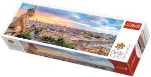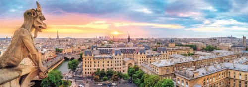 Panoramatické puzzle s kouzelným pohledem na Paříž ze slavné katedrály Notre-Dame. Rozměr složeného puzzle cca 97 x 34 cm