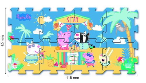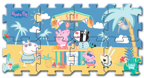 Pěnové puzzle s krásnými obrázky Prasátka Pepiny (Prasátka Peppy) a jejích přátel. Pěnová podložka je vyrobena ze speciálního materiálu (nejedná se o klasickou vroubkovanou EVA pěnu, ale o materiál podobný silné karimatce nebo několikavrstvému mirelonu). Má nadstandardní tloušťku 1,5 cm a je určena zejména ke hraní. Puzzle je měkké, omyvatelné, zdravotně nezávadné, je lehce manipulovatelné a skladné. Z jednotlivých dílů lze poskládat kostka, tunel pro autíčka, nebo jej lze použít jako krásnou dekoraci na stěnu. Z osmi samostatných dílů lze vytvořit plochu přibližně 117 x 60 cm. Pěnové puzzle TREFL PUZZLOPIANKA je vhodné také jako podložka při hraní s plastelínou nebo malování barvičkami. Po použití puzzle jednoduše otřete vlhkým hadříkem. Doporučeno pro děti od 2 let.