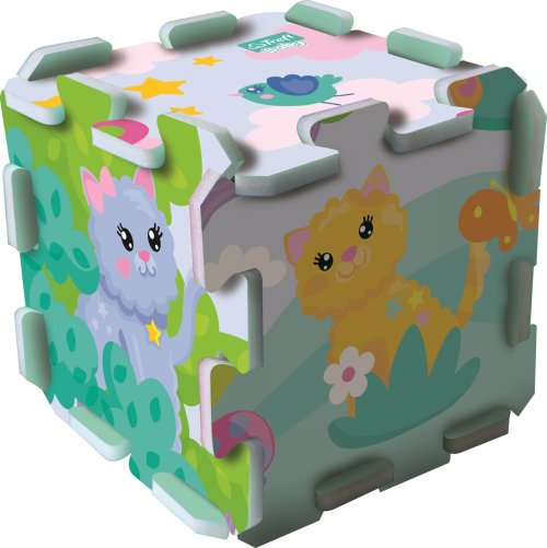 Pěnové puzzle s motivem roztomilých veselých koťat. Pěnová podložka je vyrobena ze speciálního materiálu (nejedná se o klasickou vroubkovanou EVA pěnu, ale o materiál podobný silné karimatce nebo několikavrstvému mirelonu). Má nadstandardní tloušťku 1,5 cm a je určena zejména ke hraní. Puzzle je měkké, omyvatelné, zdravotně nezávadné, je lehce manipulovatelné a skladné. Z jednotlivých dílů lze poskládat kostka, tunel pro autíčka, nebo jej lze použít jako krásnou dekoraci na stěnu. Z osmi samostatných dílů lze vytvořit plochu přibližně 117 x 60 cm. Pěnové puzzle TREFL PUZZLOPIANKA je vhodné také jako podložka při hraní s plastelínou nebo malování barvičkami. Po použití puzzle jednoduše otřete vlhkým hadříkem. Doporučeno pro děti od 2 let.