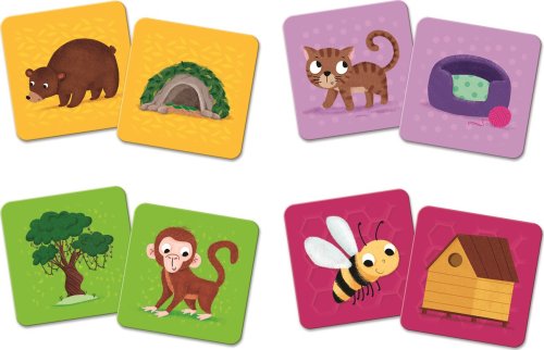 Tři paměťové hry s různými stupni obtížnosti. Začněte od nejjednodušší varianty a propracujte se k novým výzvám. 3 varianty pexesa se zvířátkami a jejich domečky velké kartonové kartičky zábavné procvičení paměti a koncentrace baleno v krabičce s uchem pro snadné přenášení Obsah balení: 36 kartiček, dřevěná figurka, návod