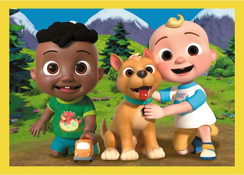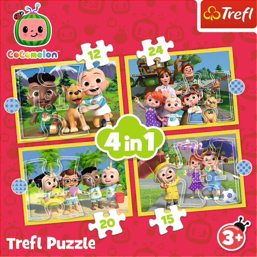 Progresivní puzzle s různou obtížností - 4 puzzle s 12 - 24 dílky, s vyšším počtem dílků se zmenšuje jejich velikost. Rozměr složeného puzzle cca 28,5 x 20,5 cm