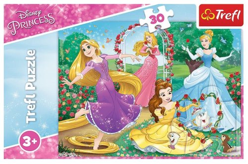 Puzzle 30 dílků s princeznami animovaných filmů Disney. Po složení vytvoříte obrázek o vellikosti 27x20 cm. Kvalitu, sytost barev a bezpečnost puzzle zajišťuje kalandrovaný papír potažený ekologickými barvami. Rozměry balení 21 x 14 x 4 cm. Vhodné pro děti od 3 let.