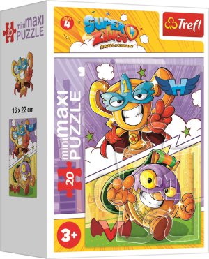 Mini maxi Puzzle (dílky 4,2 cm, baleno v malé krabičce) ze série Kid Kazoom a Super Zings. Rozměr složeného puzzle cca 16 x 22 cm