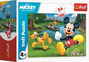 Mini-Puzzle (dílky 2,2 cm, baleno v malé krabičce) ze série Mickey Mouse. Rozměr složeného puzzle cca 20 x 13 cm