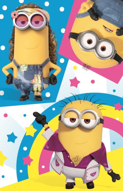 Mini-Puzzle (dílky 2,2 cm, baleno v malé krabičce) ze série Mimoni: Jsme tým. Rozměr složeného puzzle cca 13 x 20 cm