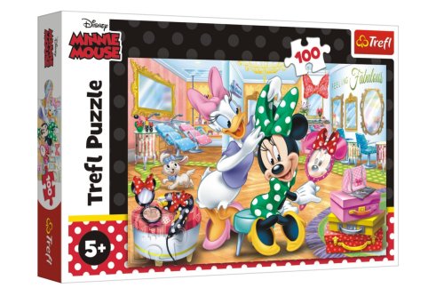 Puzzle "Minnie v salonu krásy" skládající se ze 100 dílků, určené pro všechny fanoušky animované série "Minnie Mouse". Po dokončení puzzle bude vytvořen obrázek o rozměrech 410 x 275mm. Výrobek je vyroben z vysoce kvalitních materiálů s použitím speciálního kalandrovaného papíru odrážejícího světlo, což usnadňuje skládání. Rozměry balení 29 x 19 x 4 cm. Vhodné pro děti od 5 let.