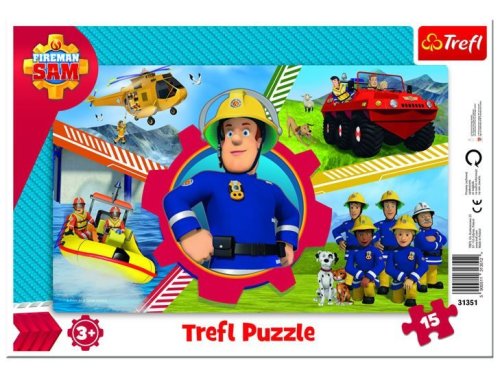 Dětské deskové puzzle 15 dílků - TREFL - Požárník Sam (dílky se skládají přímo na přiloženou podložku s rámečkem).