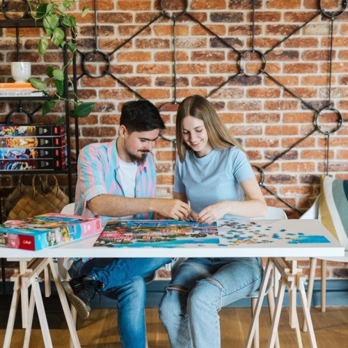 Nadstandardní Premium Plus kvalita - vysoce kvalitní karton, precizní zpracování a unikátní tvary dílků, které zapadnou pouze tam, kam patří. Puzzle dílky drží u sebe - díky výjimečné tloušťce kartonu lze složené části nebo celé poskládané puzzle pohodlně přemisťovat, aniž by se rozsypalo. Uvnitř balení je vložená předloha , která usnadní skládání. Důraz na ekologii - krabice je pouze přelepená samolepkami, bez svrchní folie. Série je certifikovaná FSC, což znamená, že materiály použité k výrobě puzzle pocházejí ze zodpovědně obhospodařovaných lesů.