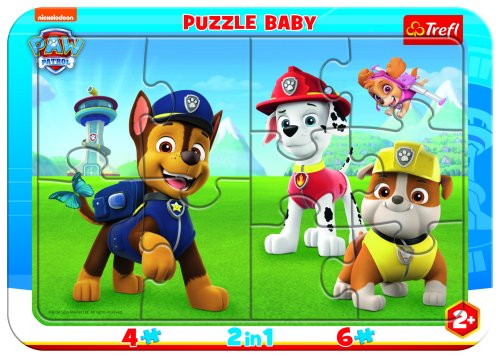 Dětské baby puzzle 2v1 pro nejmenší děti, silné dílky pro snazší uchopení a skládání. Dvě puzzle s různě velkými dílky, menší děti mohou skládat dva samostatné obrázky - se 4 a 6 dílky. Po dokončení a vložení do rámečku vznikne jeden velký obrázek.