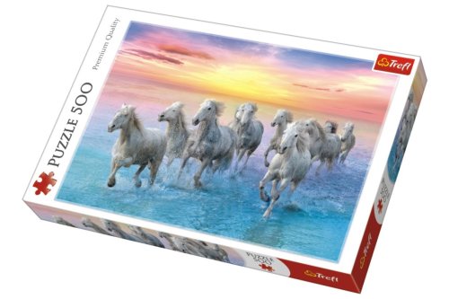 Kvalitní puzzle nadchne nejen fanoušky těchto skládaček. Krásný motiv znázorňuje bílé koně v pohybu. Puzzle se skládá z 500 dílků, rozměr sestaveného obrázku: 48 x 34 cm. Rozměr krabice: 40 x 27 x 4,5 cm Vhodné od 10 let
