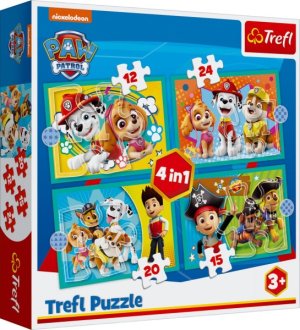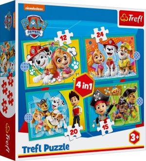 Puzzle s motivem oblíbeného seriálu Tlapková patrola. Čtyři samostatná puzzle s různým počtem dílků - 12, 15, 20 a 24 - postupně vedou ke zdokonalování dítěte při skládání a zvyšování obtížnosti. Rozměry balení 28 x 28 x 6 cm. Vhodné pro děti od 3 let.