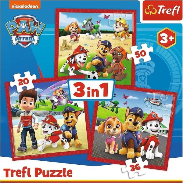 Dětské progresivní puzzle TREFL s různou obtížností - 3 puzzle s 20, 36 a 50 dílky.